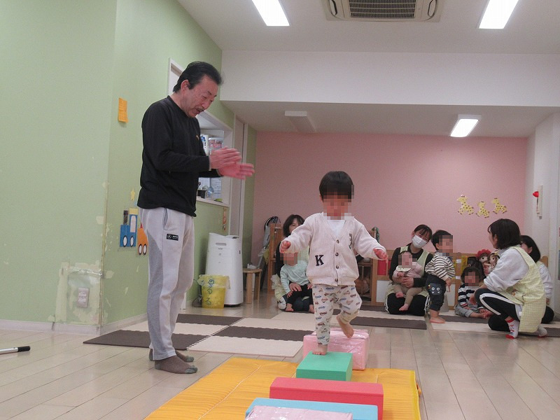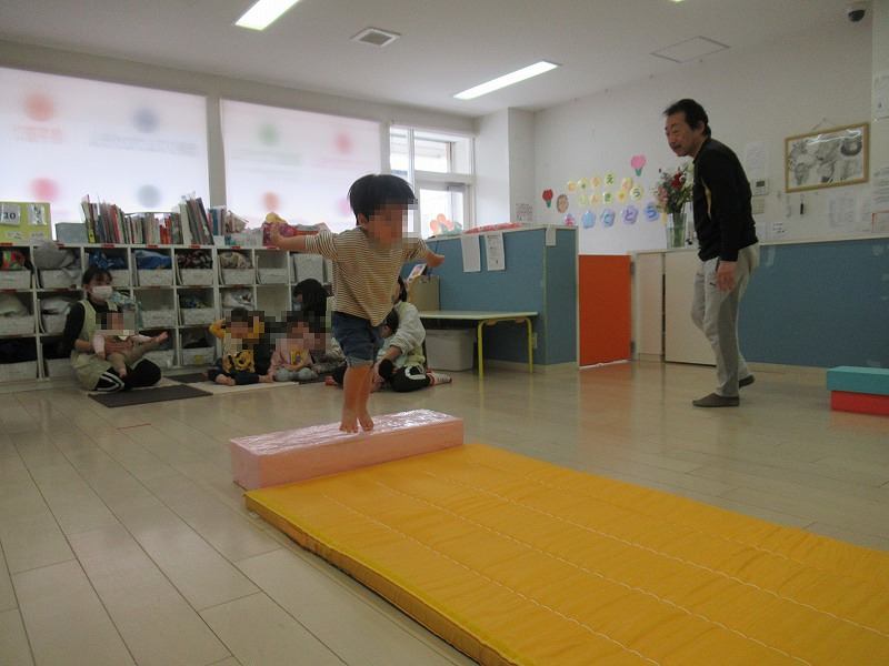 年度初の体育プログラムは年齢月齢に応じた体幹発達促進プログラムです。