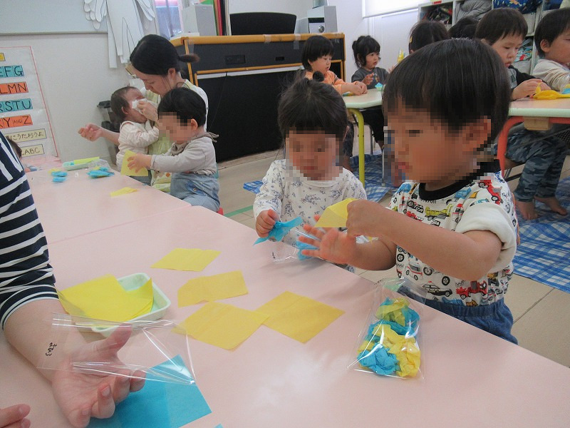 今日からゴールデンウィークにはいりましたね(^-^)ゴールデンウィークといえば〜鯉のぼり♪鯉のぼり制作をしました(ウェリナでは「製作」ではなく「制作」の文字を使います)