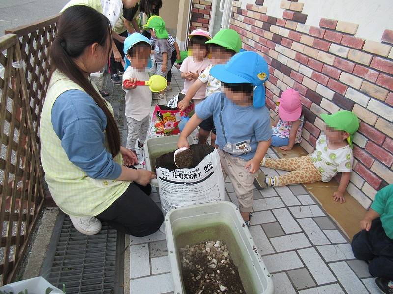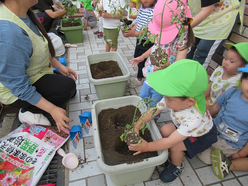 ウェリナ保育園のブログ トマトとナスの苗植え