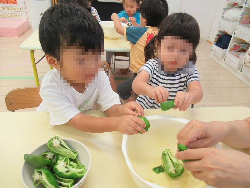 ウェリナ保育園のブログ ピーマンの種取り