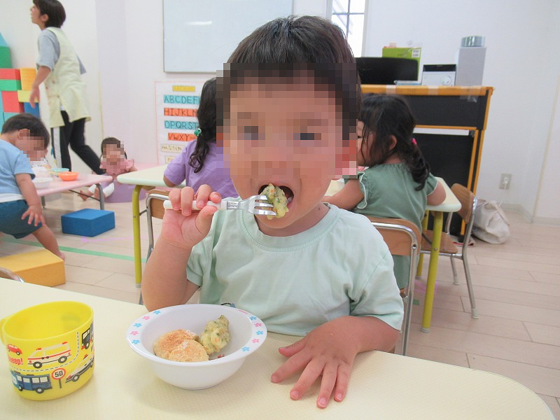 日頃は苦手なピーマンもこの日は楽しそうに食べていました(^-^)