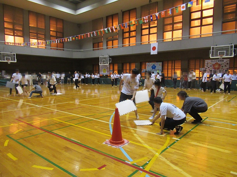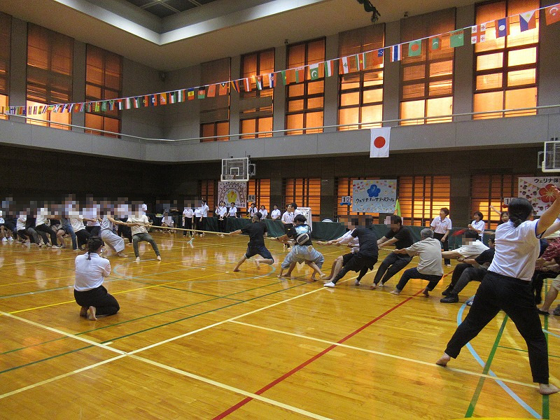 「綱引き」!「板渡り競争」!と親子で協力して「お寿司競争」!