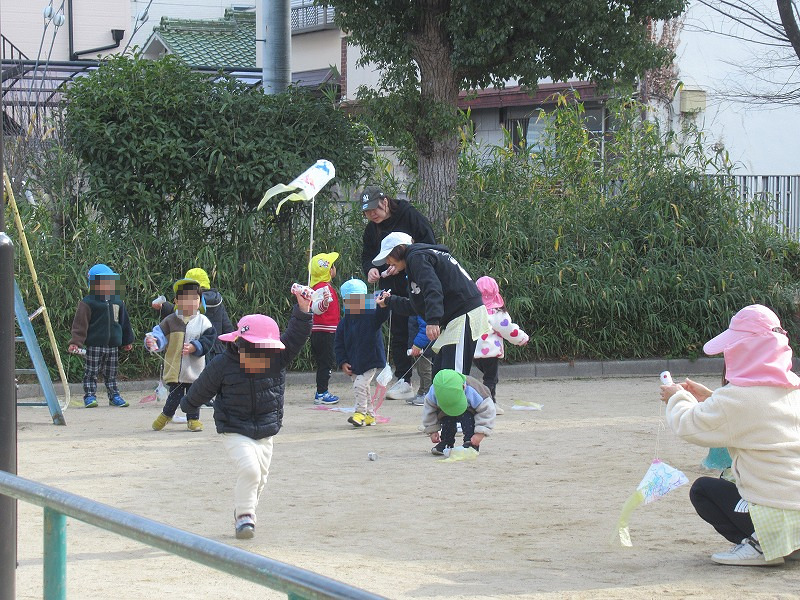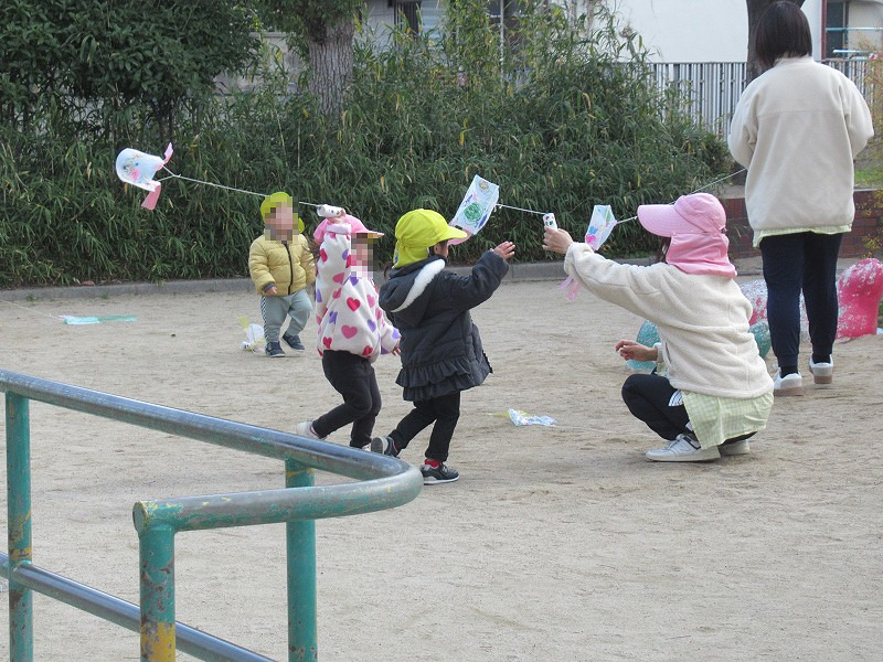 この日は工作の時間に自分たちで作った凧をあげました(^-^)