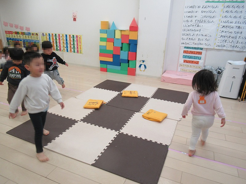写真は今週あった「的あて」「テープペッタン」「座布団取り」の写真です。