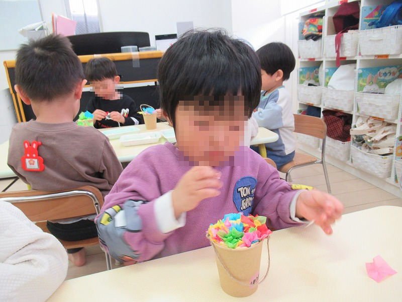 色紙でフラワーアレンジメントをしました(^-^)