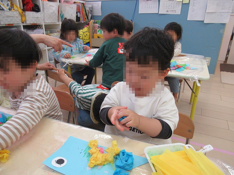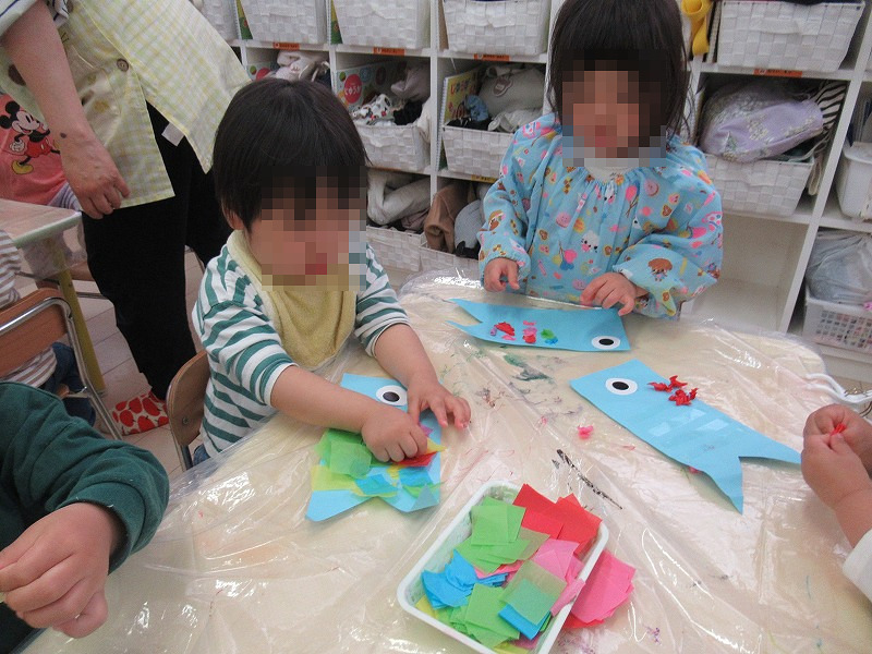 もうすぐ端午の節句。鯉のぼり制作をしました。ウェリナでは「製作」ではなく「制作」の文字を使います。違いは調べてくだされば納得していただけるかと(^-^)