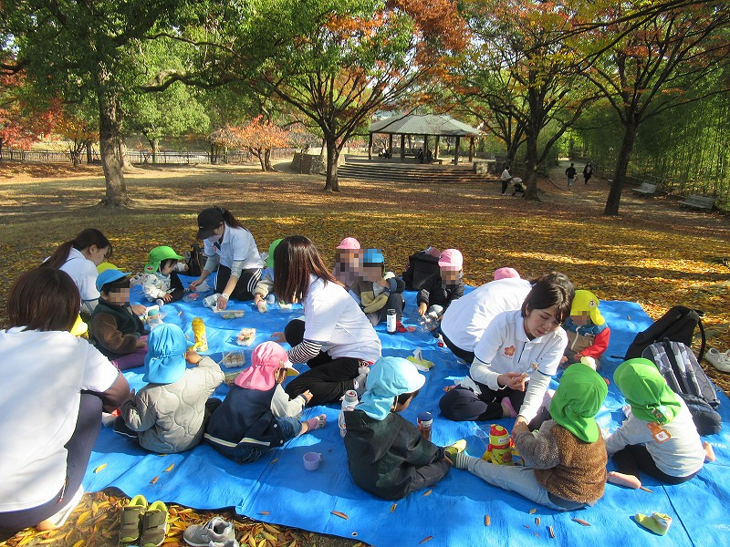 たくさん遊んだ後はお腹がペコペコ〜お待ちかねのお弁当タイム!(全員分のお弁当を調理師さんが6時半から作ってくれました)パクパクモグモグ凄いいきおい!おかわり続出のお弁当タイム(笑)