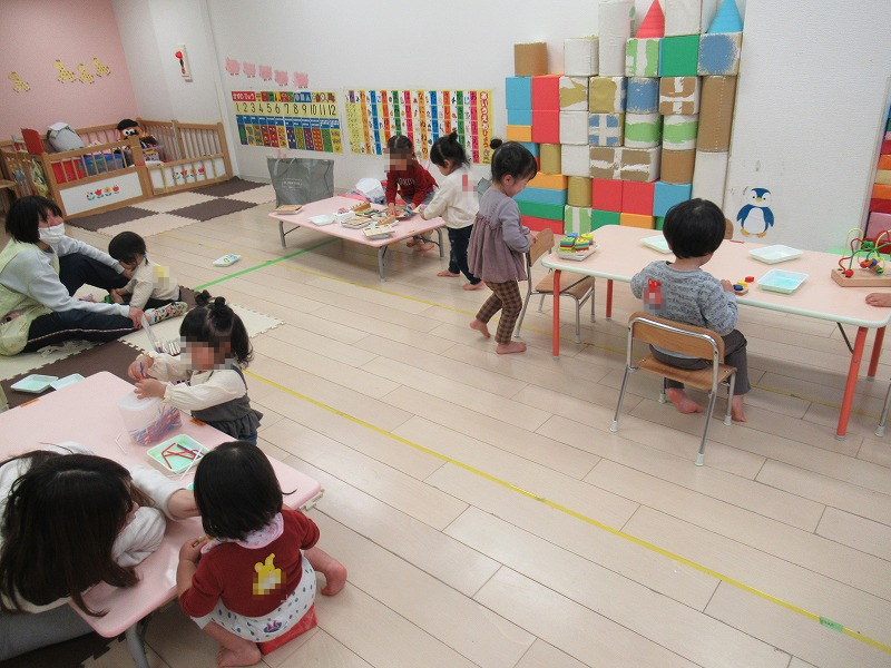 左下写真はそれぞれ好きなモンテッソーリ玩具に興じる子天使ちゃん達(^-^)。