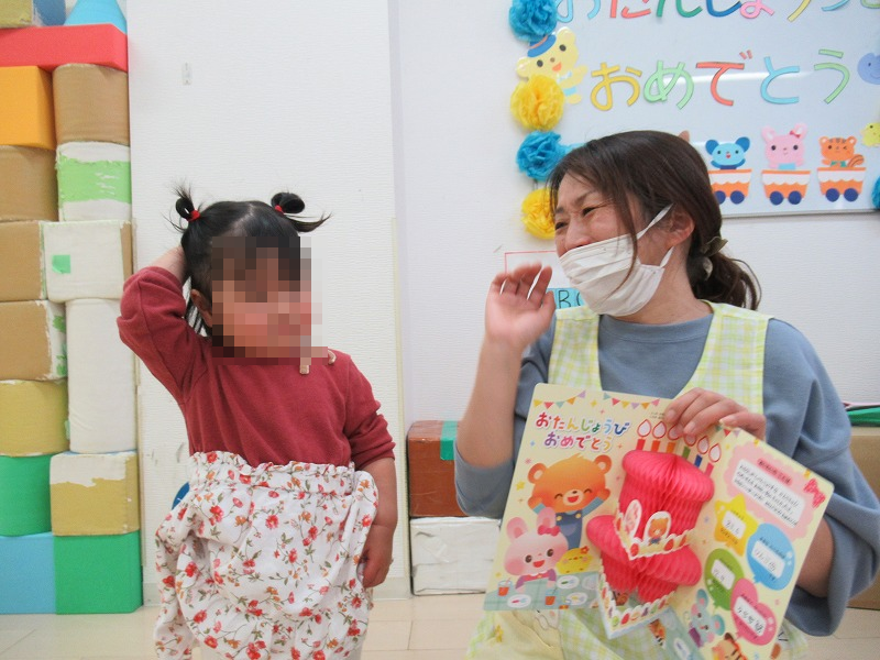 入園当初はシクシク泣いていたKちゃんも今では先生によくおしゃべりしてくれる元気な女の子になりました。思慮深さと洞察力はKちゃんのおおきな長所(^-^)/。長所を大切にどんどん大きくなぁれ♪お誕生月おめでとう!