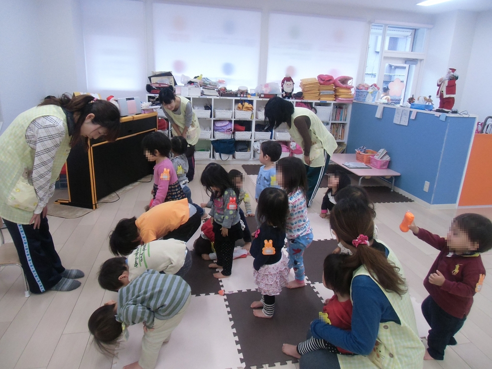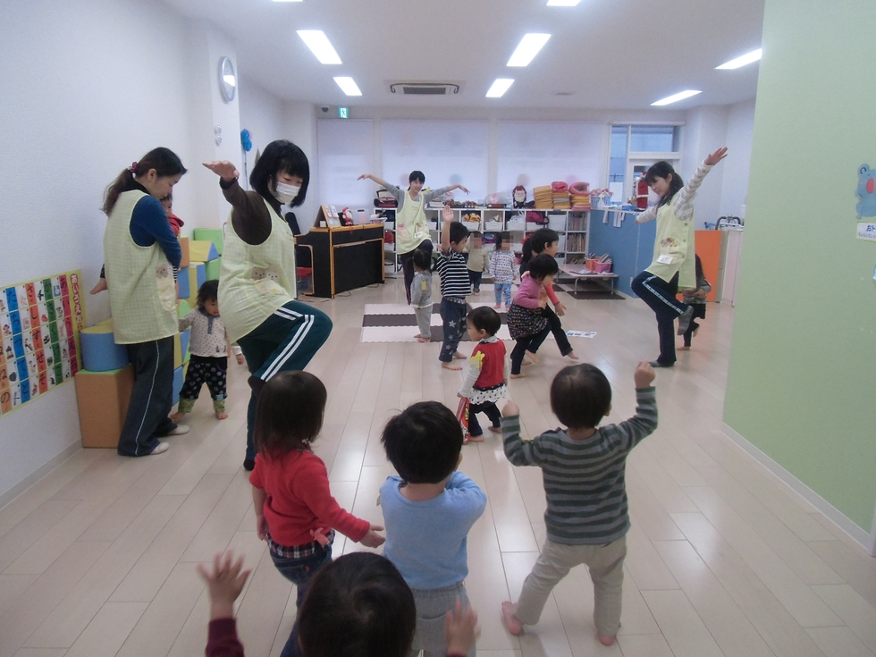 朝の設定保育、数字遊びのあとの戸外遊びは室内運動です。