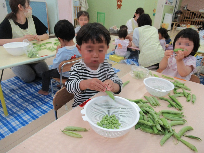 ウェリナ保育園のブログ えんどう豆(食育)その2