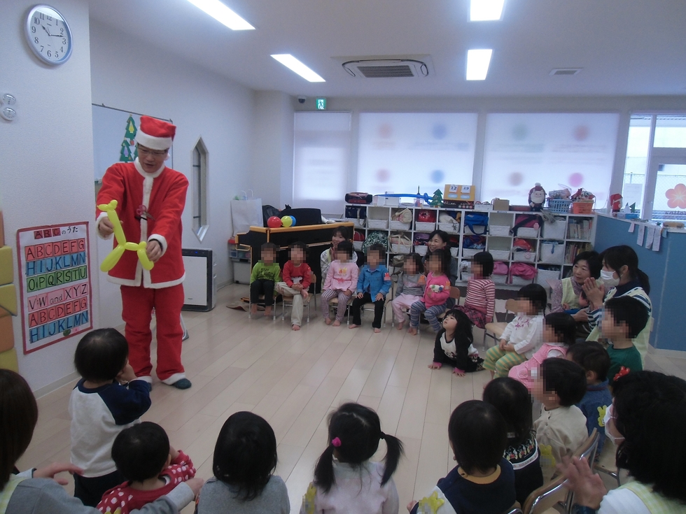 お話の途中で風船できりん(左下写真)やぞうさん、おさるさん、うさぎさん等を作ってもらって子天使ちゃん達、大喜び(^0^)