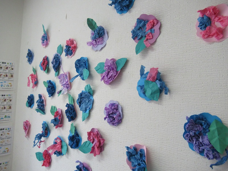 玄関エントランスに素敵なアジサイ畑ができました(^o^)/。