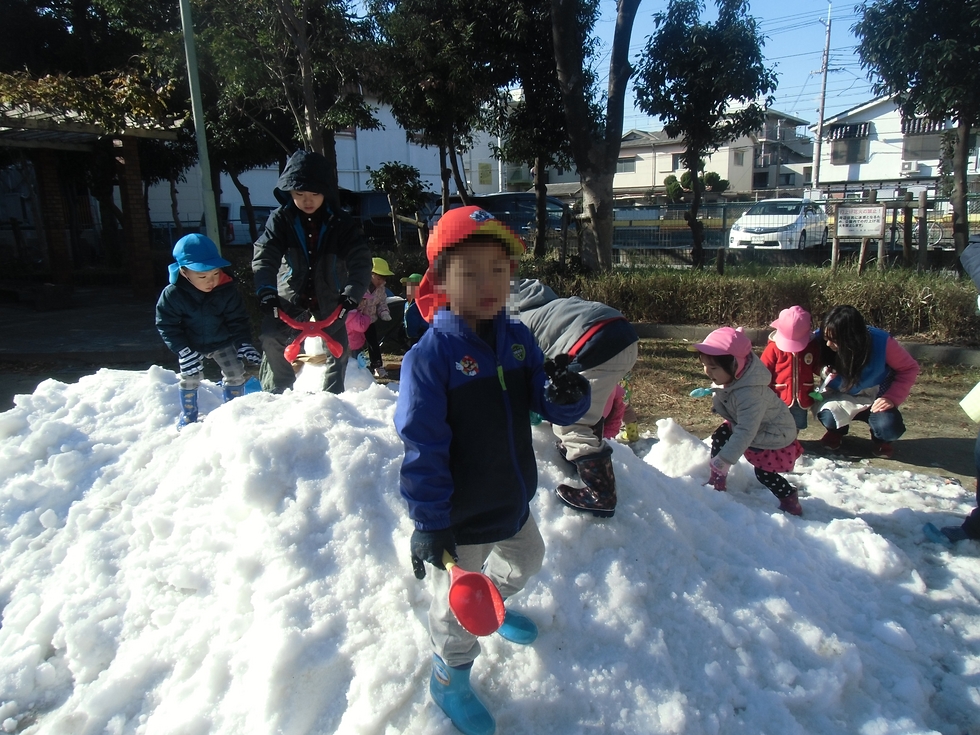 園長はよれよれになりながらも雪を運んできたかいがありました(笑)。