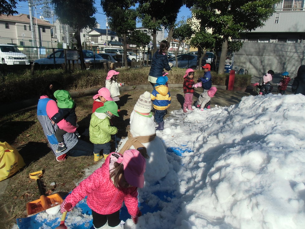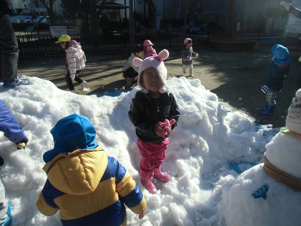 雪山に登ったり、雪合戦が始まったり、雪だるまを作ったり、雪に頭を突っ込んだり(風邪ひきますよ^-^)雪を食べようとしたり(食べてはいけません^-^)。みんな大喜び!(右左下写真)