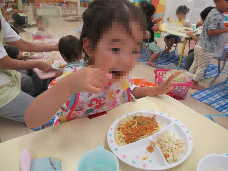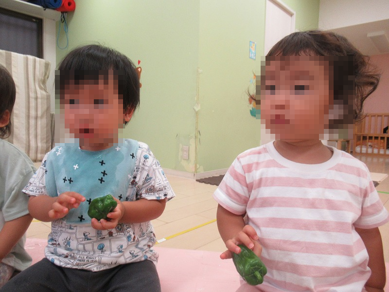 収穫したピーマンはその日の給食スパゲッティーの具に(^-^)苦手なピーマンもパクパクモグモグ♪おいしいねー!