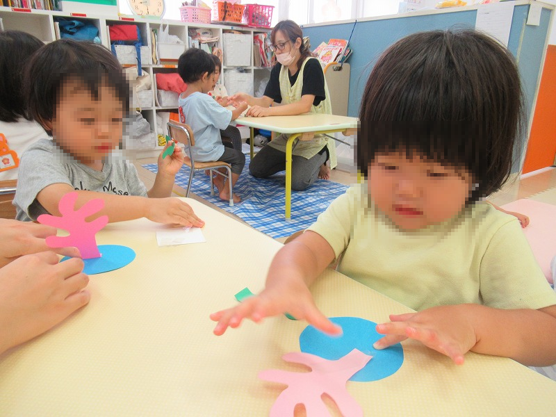 年齢・月齢に合わせて、切ったり、塗ったり、糊付けしたり♪力を合わせて頑張ります。