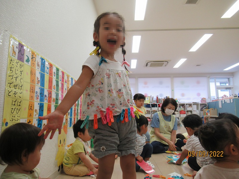 この日の設定保育は洗濯バサミ遊び♪
