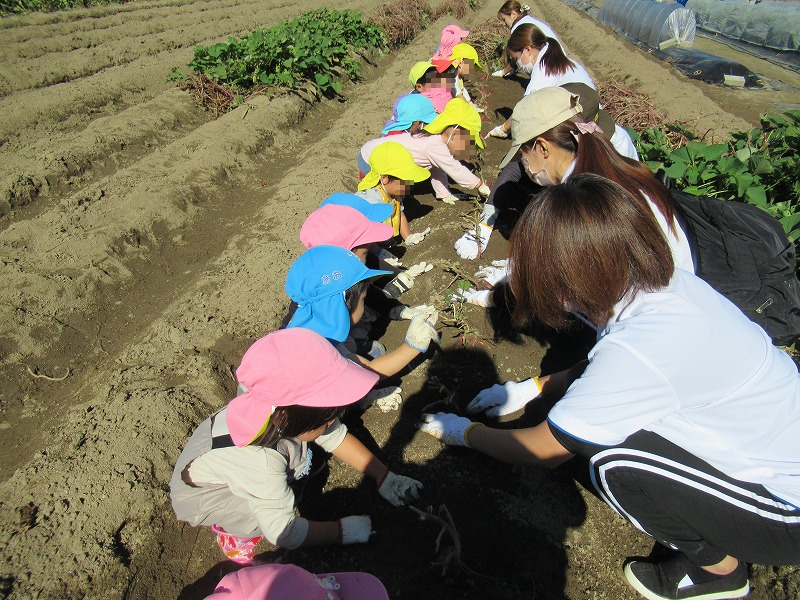 今週は芋ほりを体験しました(^-^)/電車に乗って〜♪バスに乗って〜♪片道およそ30分、農園に到着でーす。