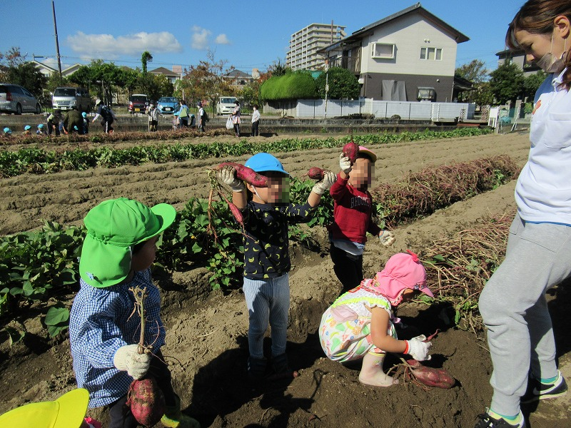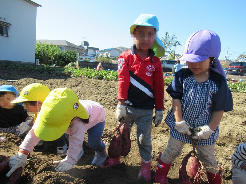 「よいしょ、こらしょ♪」「うっわーおいもさんだー!」「○×△※□〜!」言葉にならない叫びをあげて興奮する子天使ちゃんも(笑)」(^0^)/次々とお芋を掘り出します♪