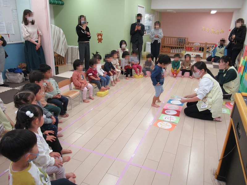 2才児さんはさすがです、「文字遊び」お母さんお父さんに格好いいところを見てもらえました(^-^)
