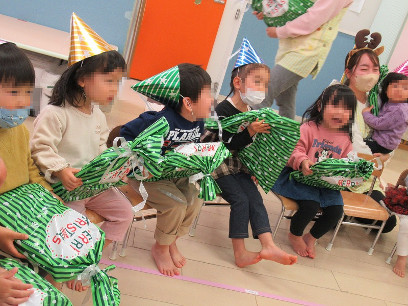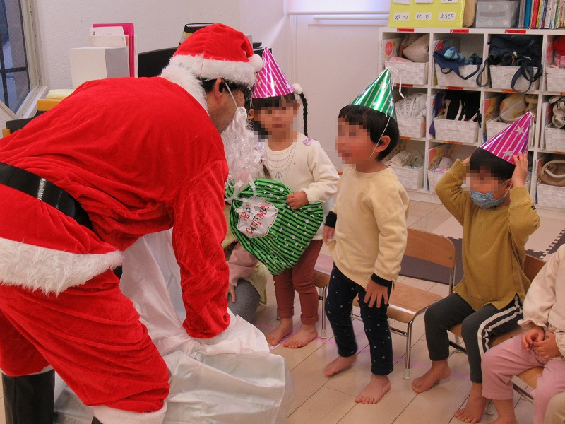 一人一人直接にサンタさんからプレゼントをもらって嬉しそう(^-^)