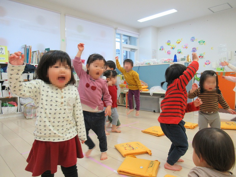 「○※△×□〜!」0才児さんまで先輩と一緒になって騒いでいます(笑)