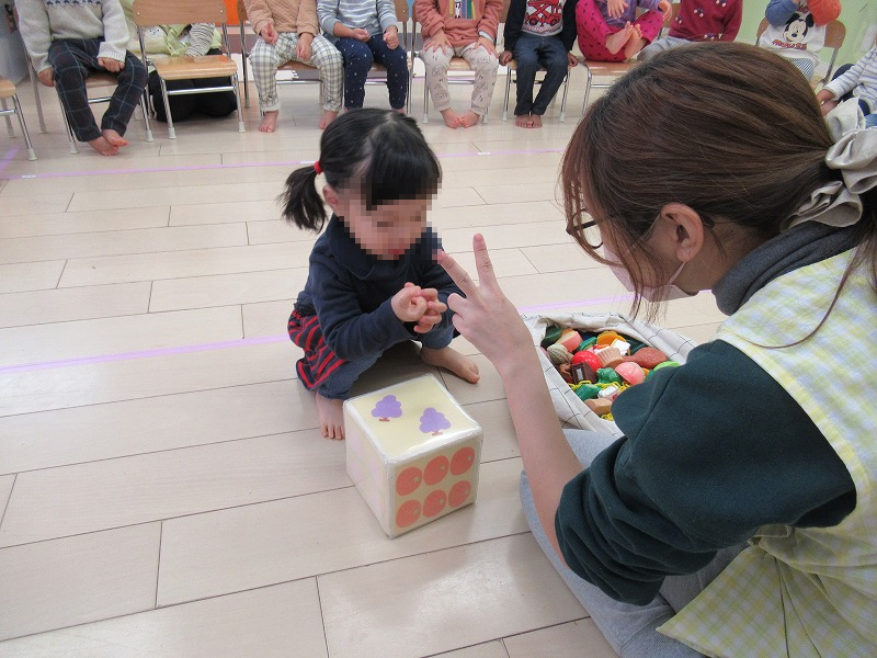 写真は数字遊び。この頃(1月)になると自信をもって取り組める子天使ちゃん達が増えました。みんなー今年も楽しく遊ぼうねー(^-^)/