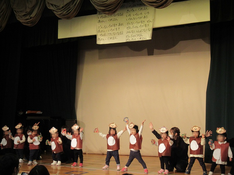 上の写真はオレンジ・黄組さん(1,0才児)のお遊戯「アイアイ♪」みんな可愛い〜!