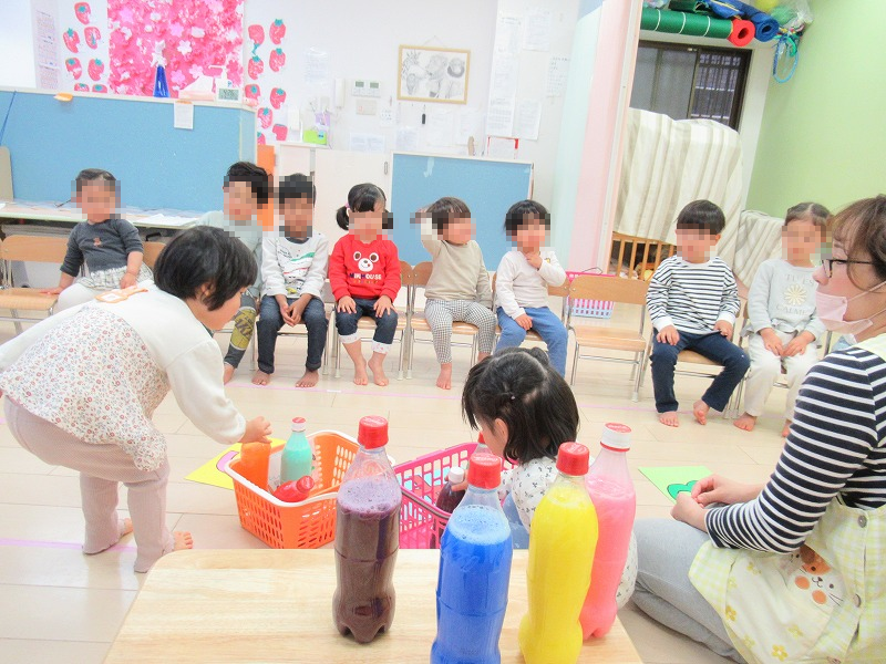 この日の数字遊びは「重さ」を使って数字の概念を知ります。