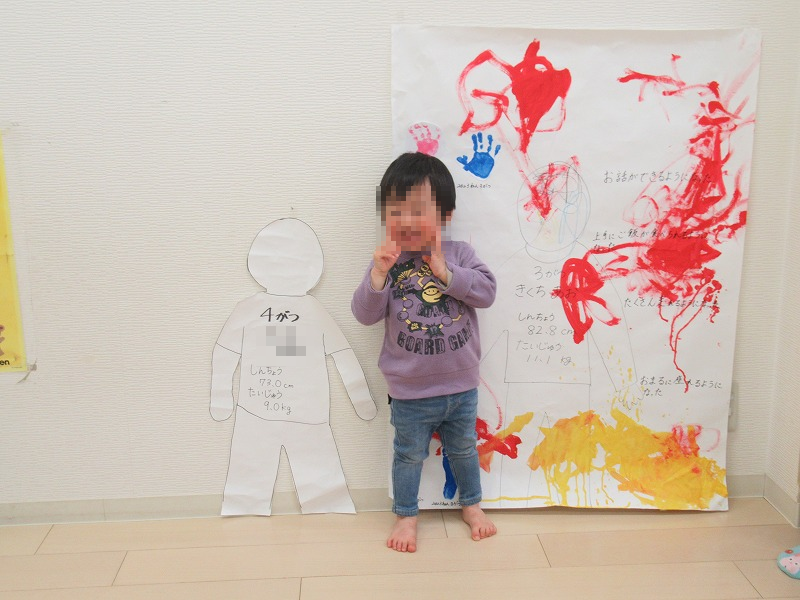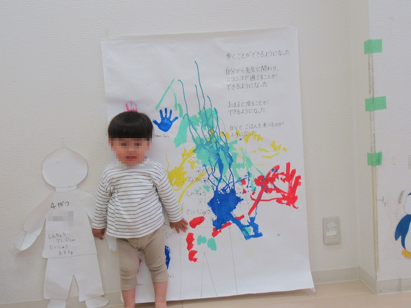 身長・体重・手形・足形はもとより、この1年間で出来るようになったことを書き起こし、一つ一つ先生と一緒に確認していきます。