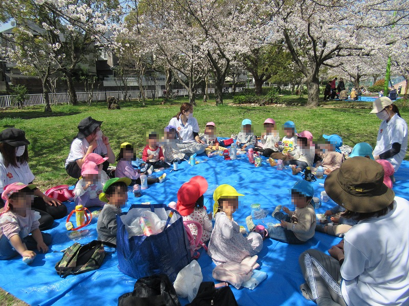 桜の下で食べるお弁当のなんと美味しいこと(遠足弁当は先生達は食べませんが、園長だけは毎回子ども達と一緒に食べるんです・・スイマセン汗)