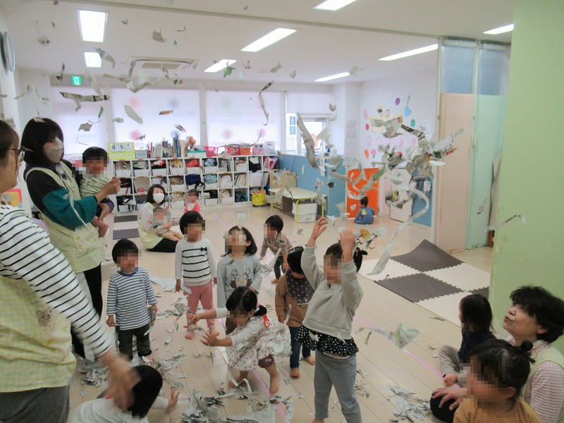 お家では好きなだけ散らかして遊ぶなんてことはできませんよねーこの日はストレス発散ちらかし遊び(^-^)