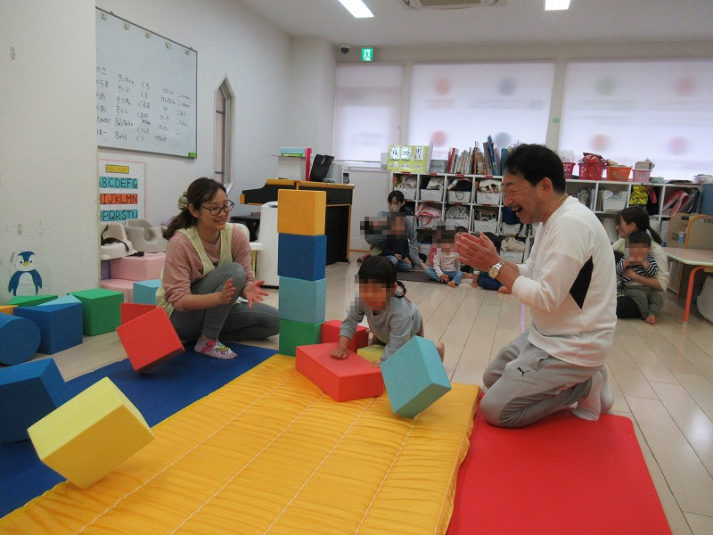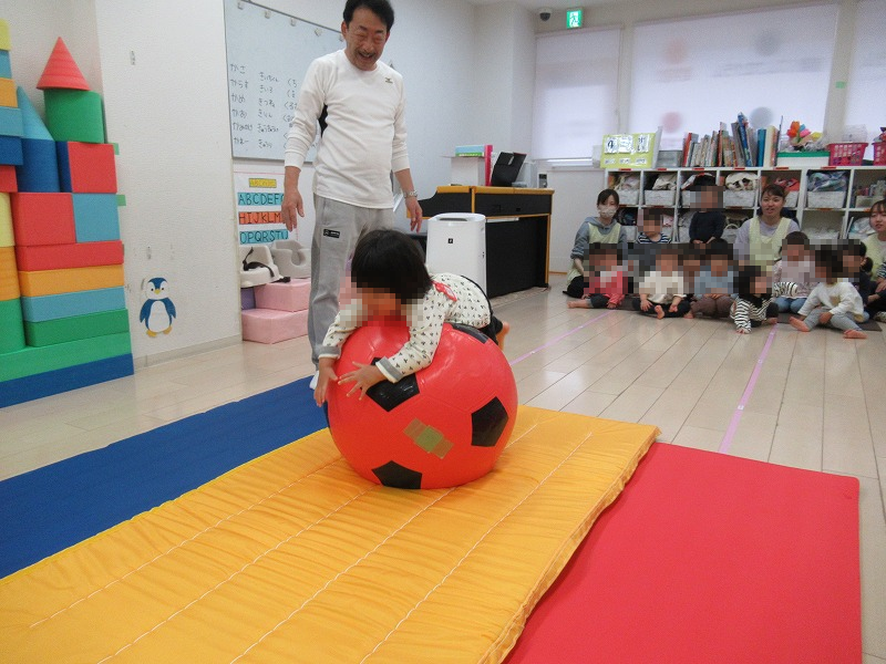 今週も雨の日がありました。雨の日のお外遊びは室内での体育プログラムに変更です。
