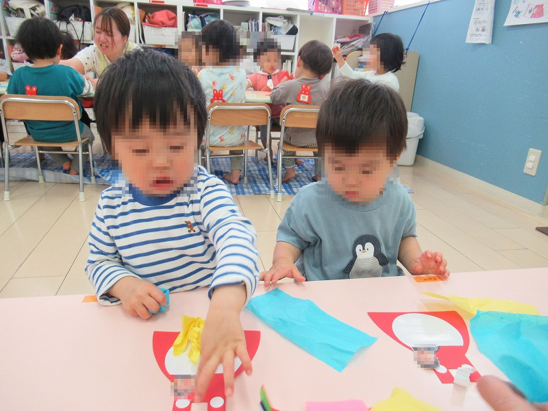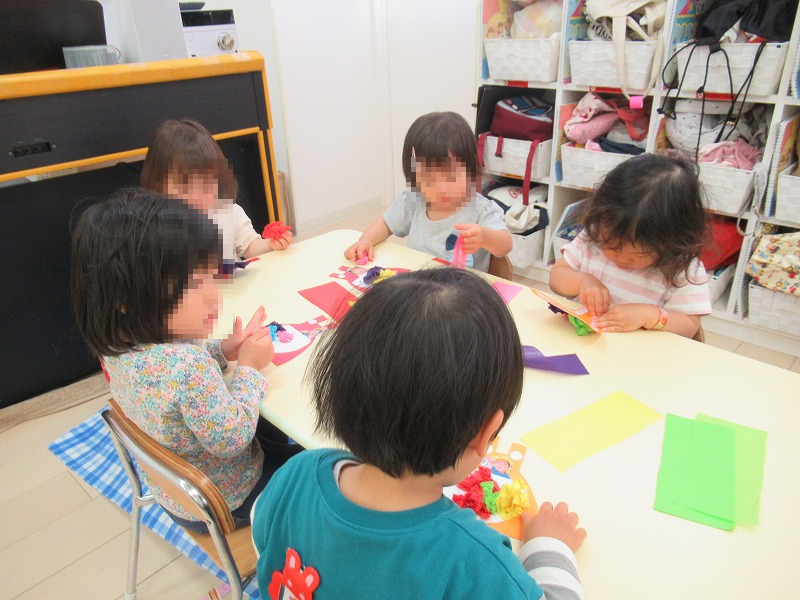 今週の工作は母の日のプレゼント作り♪先生から母の日の説明を聞いたら工作スタート!