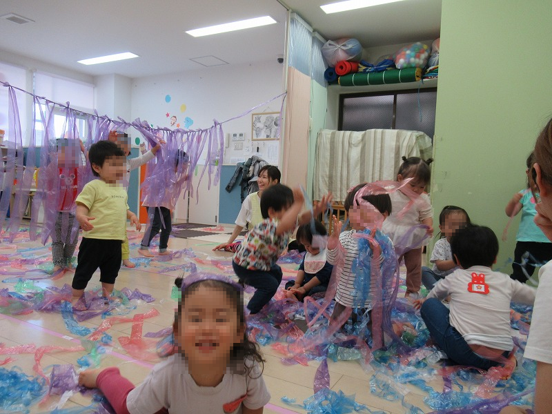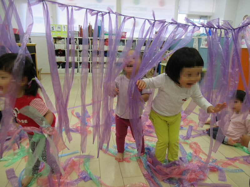 この日の設定保育はスズラン遊び、「わーわー」「キャーキャー」「○×△※◇〜!」言葉にならない叫びをあげて、子天使ちゃん達楽しそう!