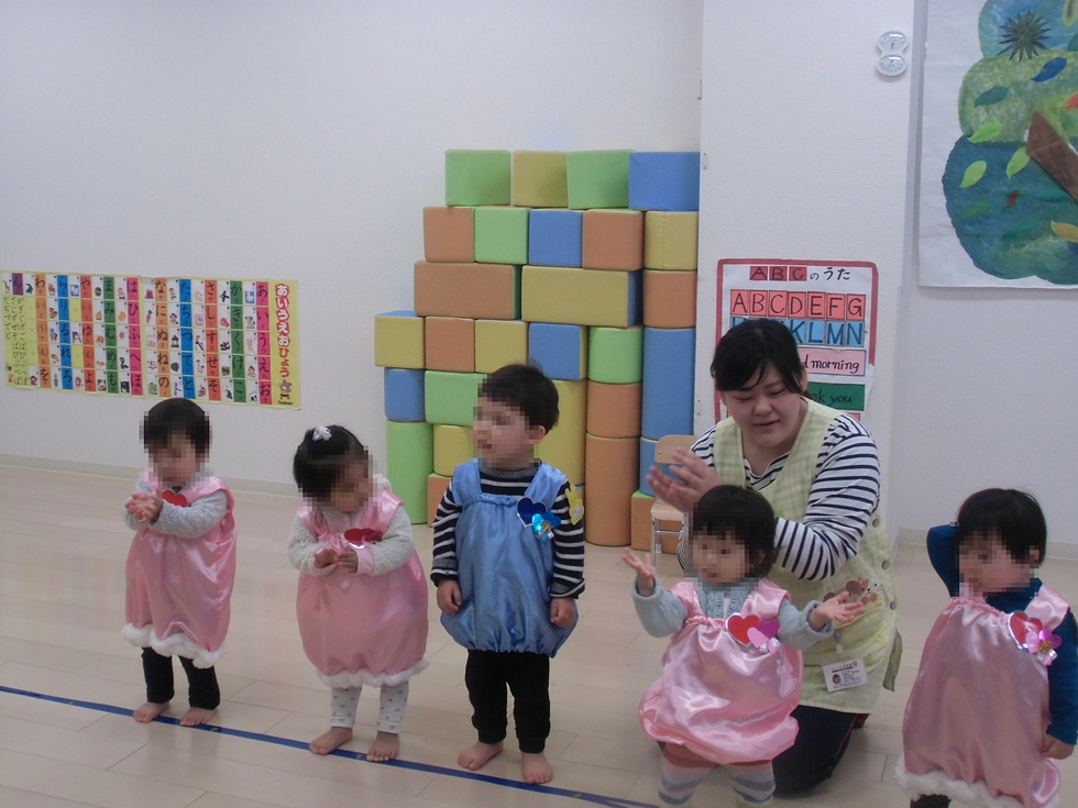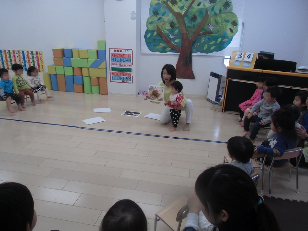 左下写真は0才児(満1才・子天使ちゃん)の発表会練習風景。すごく可愛いんです(^0^)。