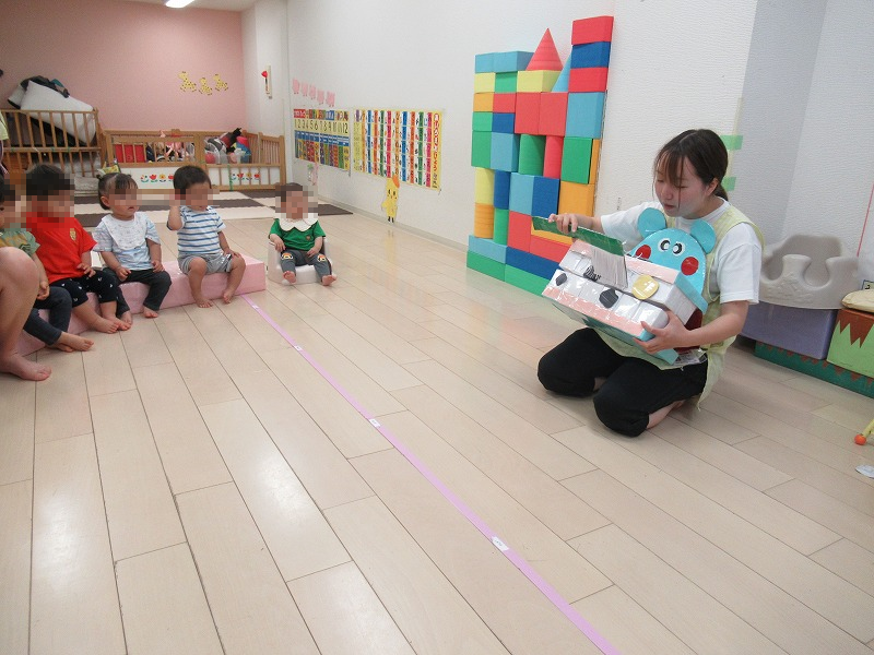 昨日は「歯の磨き方」をしましたよ。先生から正しい歯の磨き方を聞いたら、さっそく実践です(^-^)。