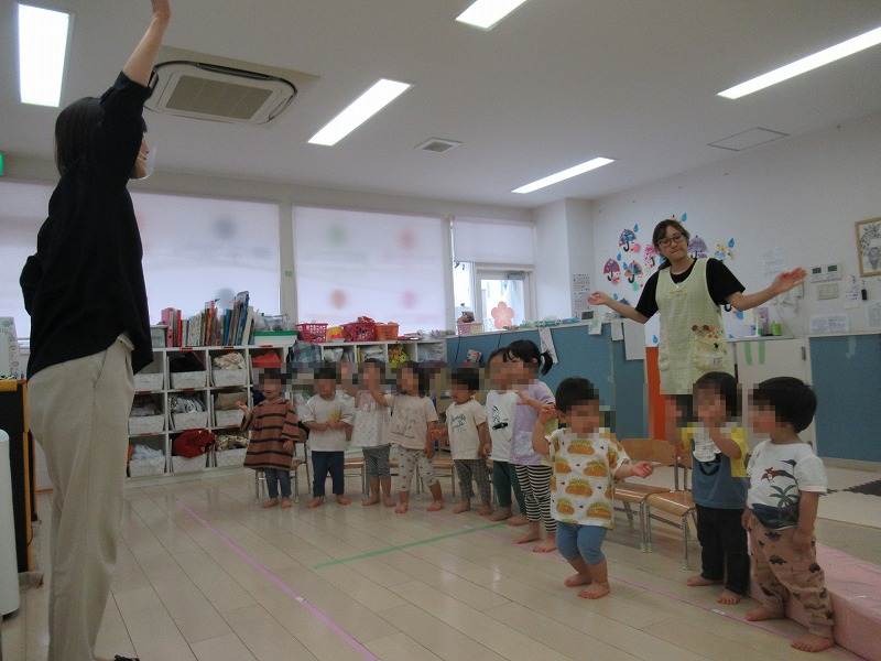 オレンジ組(1才児)さんも集中して楽しんでいます(^-^)/