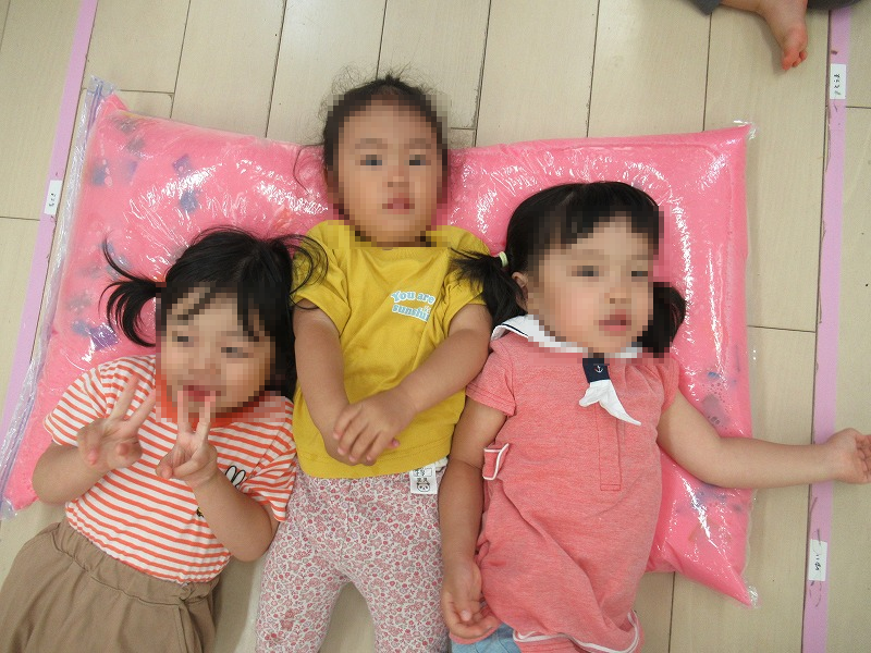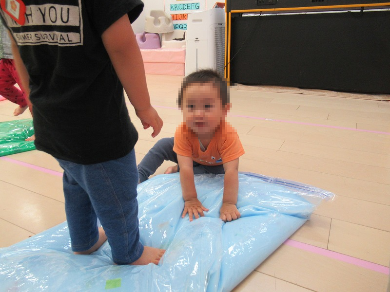 「うわーぽわぽわ〜」「つめたーぃ」「○×△◇※〜」子天使ちゃん達嬉しそう!不思議な触感を楽しんでいました(^-^)/
