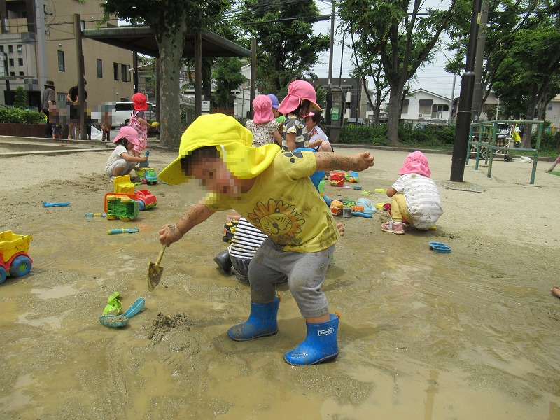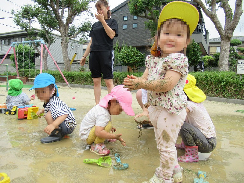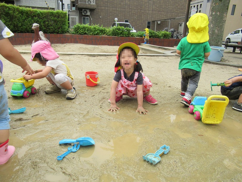 この日のお外遊びは泥んこ遊びをしました。日頃は出来ない遊びもこの日は思う存分楽しめます(^-^)