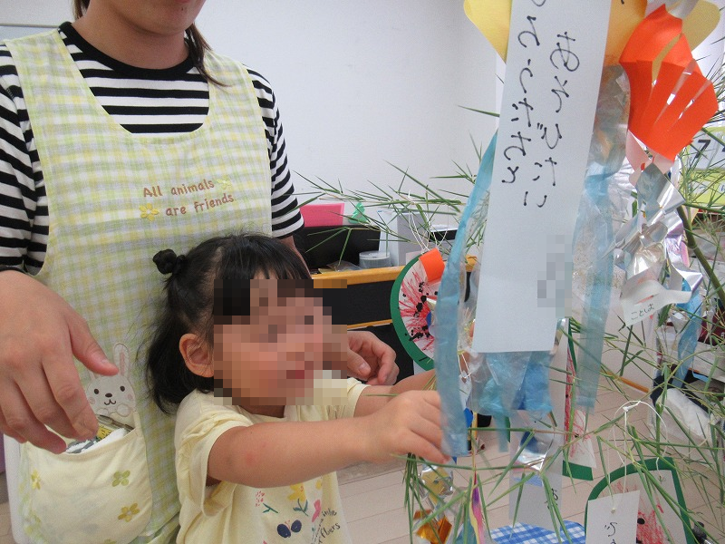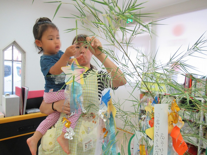 短冊にはみんなの願いが・・「アンパンマンに会いたい!」「いっぱい、はしりたい」「JRにのりたい」などなど、可愛いお願い事がいっぱい!みんなー、叶うといいね(^-^)/