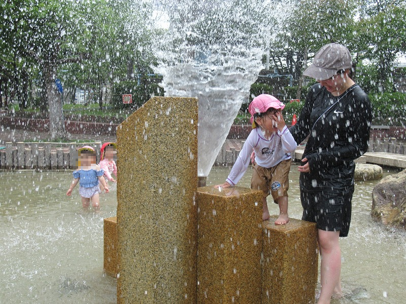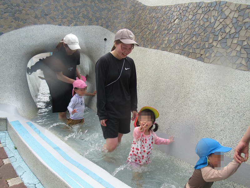 この日の赤組さんは電車に乗って、伊丹のウォターランドに行きました。むし暑い日の水遊びって最高だよね(^o^)/