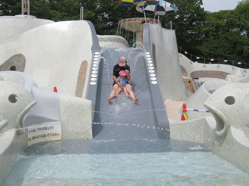 水路を探検したり〜、噴水で遊んだり〜、スライダーに挑戦する赤組さんも!