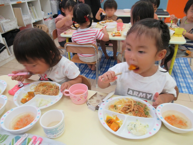 この日の給食のおかず、かぼちゃはもちろん一番人気でしたー(^-^)/