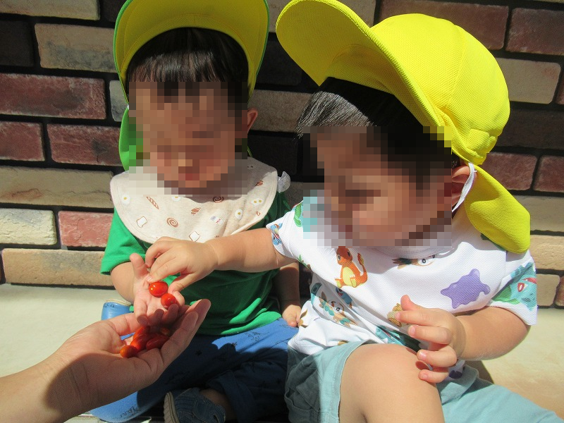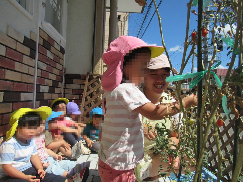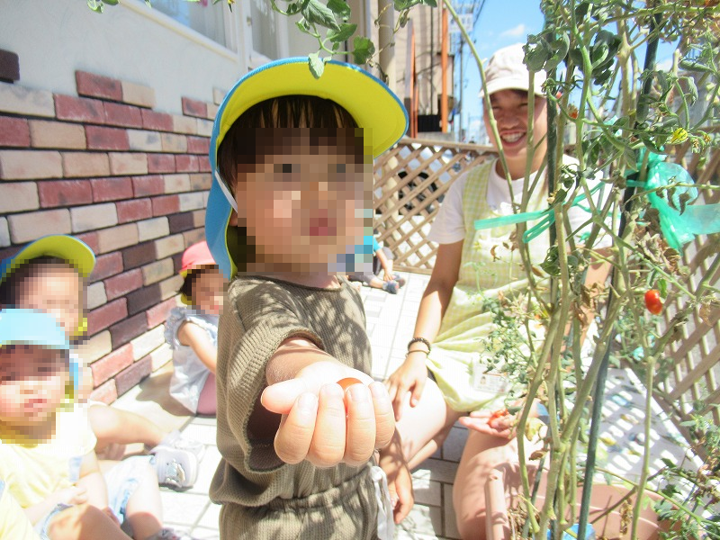 今週はみんなで育てたミニトマトの収穫をしました。思ったより沢山穫れて子ども達、満足そうな笑顔♪