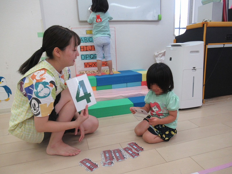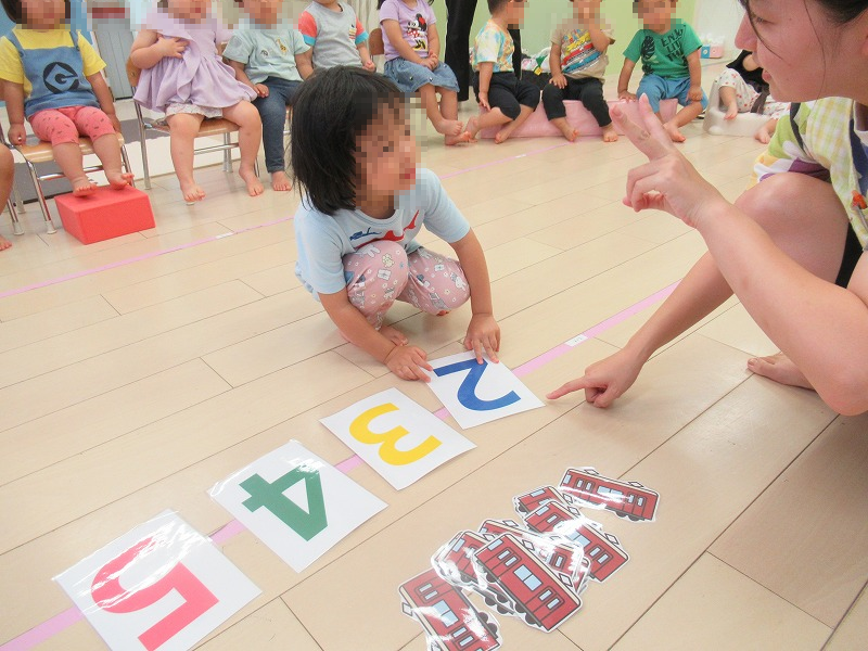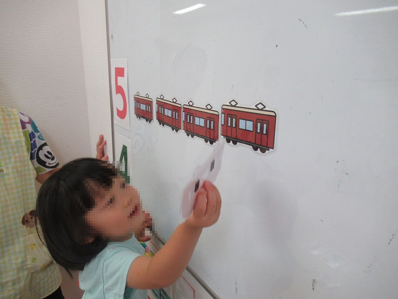 今週の数字遊びは、阪急電車のマグネットシートを使って「長さ」のお勉強。赤組さんたちさすがです、楽しんでクリアしています(^o^)