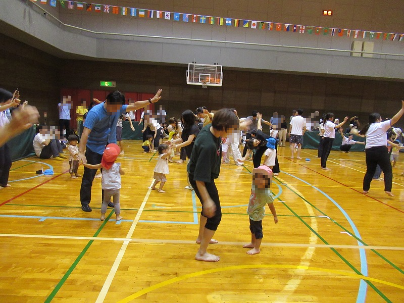 最後の演目はお父さんお母さんと一緒にお遊戯「親子でビューン」