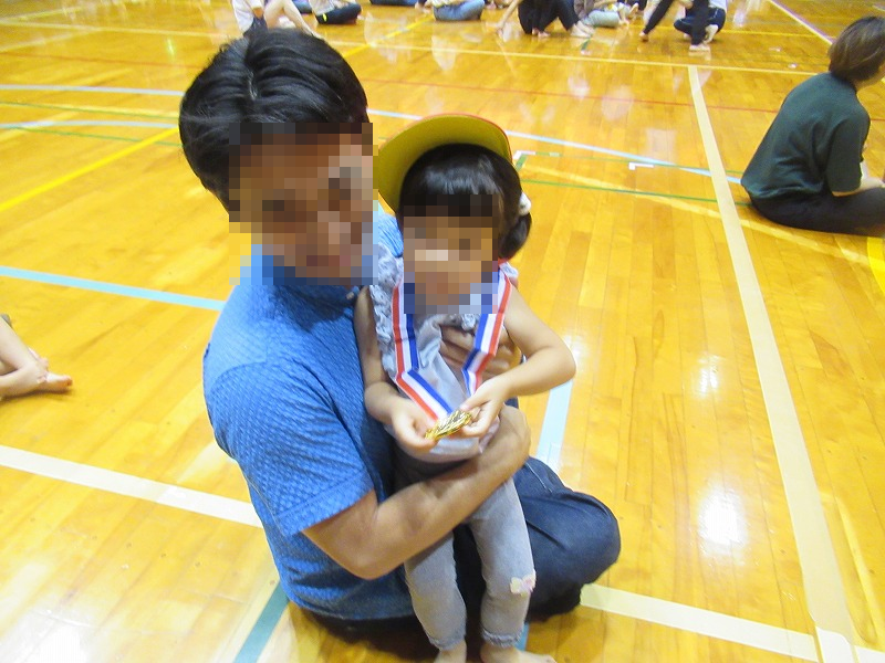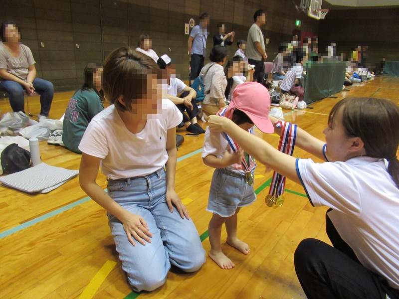 頑張った子ども達全員にメダルの贈呈です。先生からメダルを首にかけてもらってみんな嬉しそう(^-^)