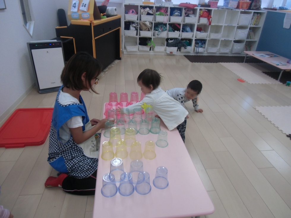 左下写真、設定保育「コップブロック」です。